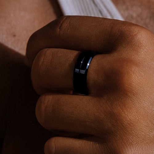 this twin barrelled stainless steel ring will remain commanding and charming.
