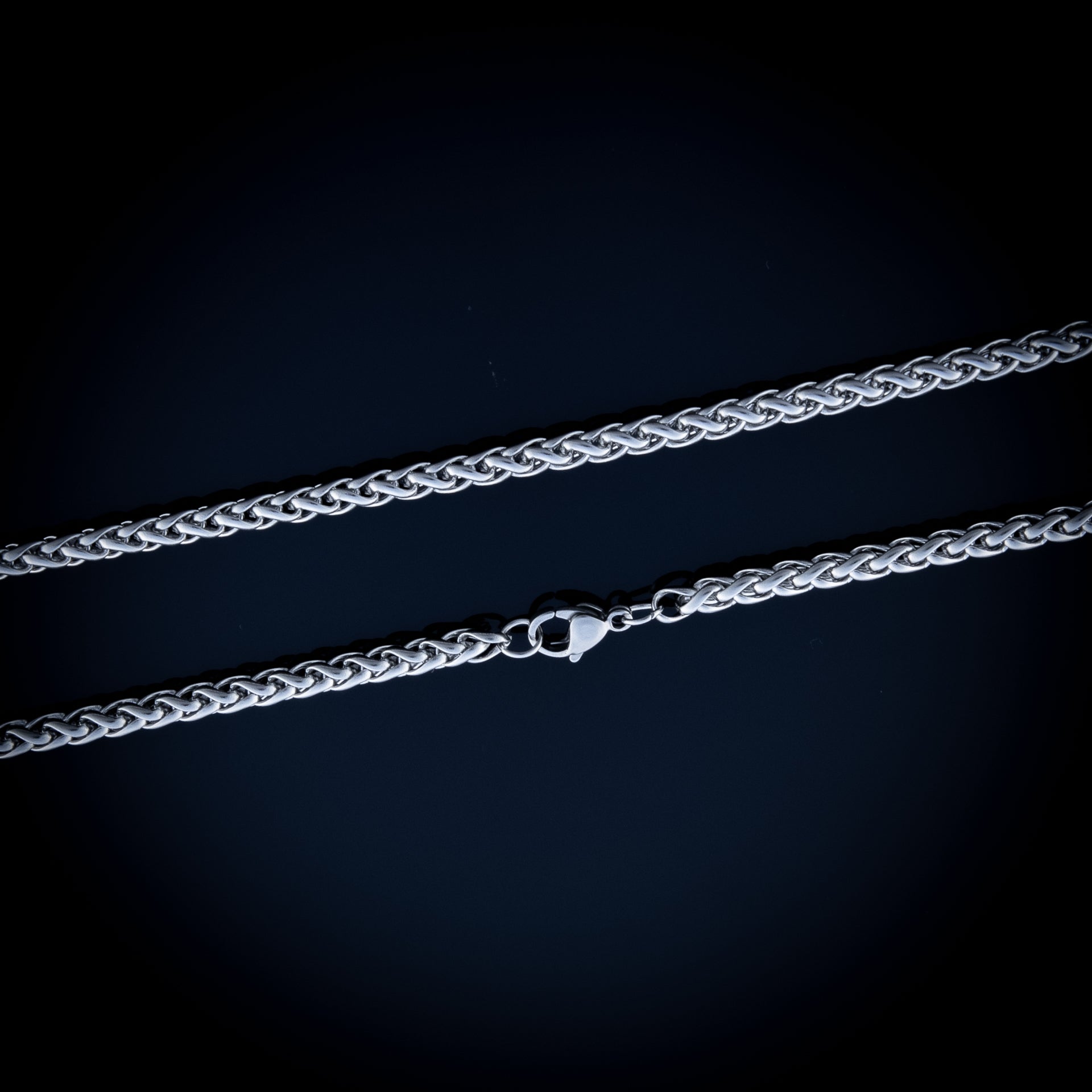 Crafted from stainless steel this sleek and slender chain will remain a trustworthy addition to anyone's collection.