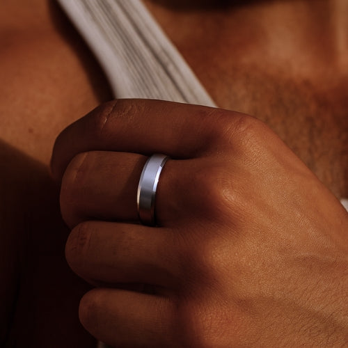 Simple yet stunning stainless steel Eclipsed ring in moonlit silver.
